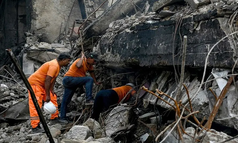 Rescue 1122’s city search and rescue groups continued to comb via the particles in a single day, utilizing specialised instruments and cutters, together with thermal imaging cameras.