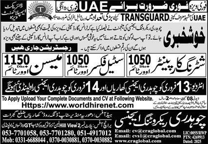 Vacant posts together with metal fixer, mason and shuttering carpenter are introduced in Chaudhary Recruiting Company Sharjah, dubai UAE as per 12 February 2026 commercial in each day Categorical Newspaper. Intermediate and Matric and so forth. instructional qualification will likely be most well-liked.