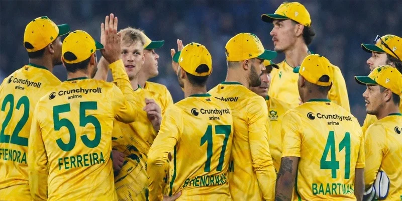 Aiden Markram (captain), Quinton de Kock, David Miller, Keshav Maharaj, Marco Jansen, Anrich Nortje, Lungi Ngidi, Kagiso Rabada, Dwaine Pretorius, Temba Bavuma, Jason Smith, Corbin Bosch, Kwaya Mafaka, George Linde, and Donovan Ferreira.