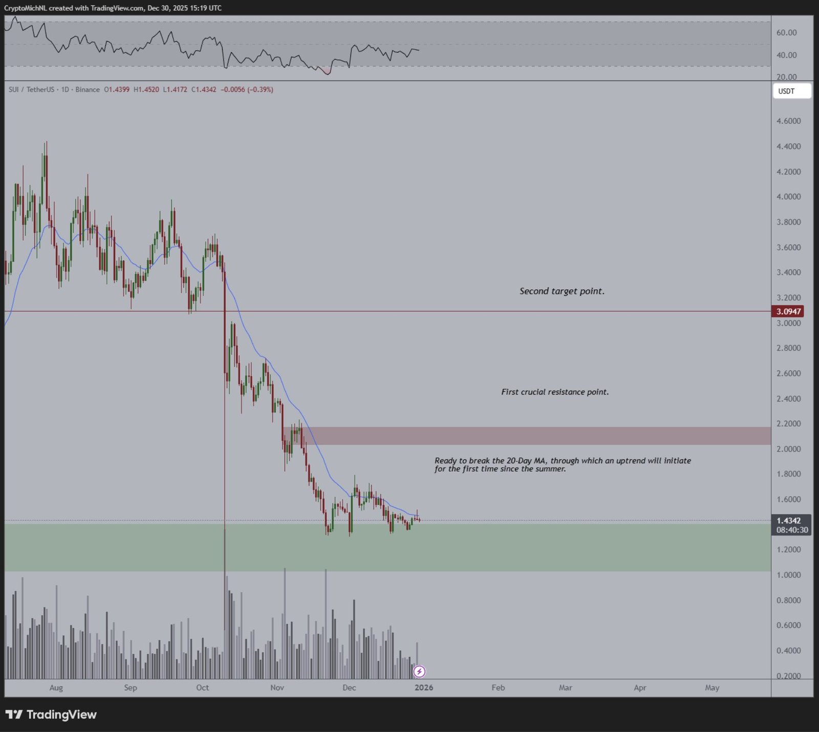 SUI worth evaluation, day by day chart | Supply: X @CryptoMichNL