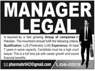 Non-public Firm jobs commercial dated about 21 February 2026 in day by day Jang Newspaper invitations utility for the vacant submit of supervisor authorized in Lahore, lahore Punjab Pakistan. Most popular Schooling is LLb and LLM and so on.