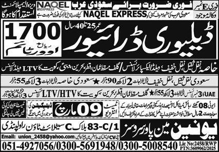 Union Manpower Companies invitations functions for job positions marketed in day by day Specific dated 6 March 2026 for following vacancies in Riyadh, tabuk Saudi Arabia.