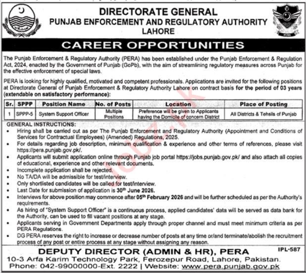 Vacant posts together with system assist officer are introduced in Punjab Enforcement and Regulatory Authority PERA Lahore, lahore Punjab Pakistan as per 21 January 2026 commercial in day by day Jang Newspaper. Academic {qualifications} required Grasp, Others and Bachelor and many others.