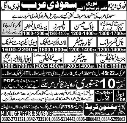 Pakhtoon Commerce Take a look at & Technical Heart invitations functions for job positions marketed in every day Specific dated 9 January 2026 for following vacancies in Dammam, jeddah Saudi Arabia.