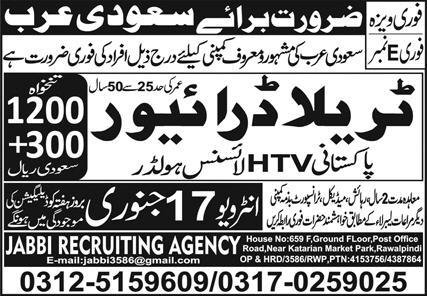 Jabbi Recruiting Company is in search of candidates for following posts as per job commercial printed in day by day Categorical Newspaper of January 14, 2026 for location Jeddah, makkah Saudi Arabia: