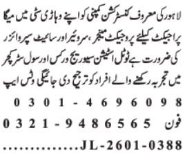 Venture Supervisor & Web site Supervisor Jobs 2026 in Lahore 2026 Job Commercial Pakistan