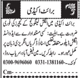 Vacant posts together with instructor and english language instructor are introduced in Academy Quetta, quetta Balochistan Pakistan as per 14 January 2026 commercial in each day Jang Newspaper. Candidates with Bachelor and so on. academic background will probably be most popular.