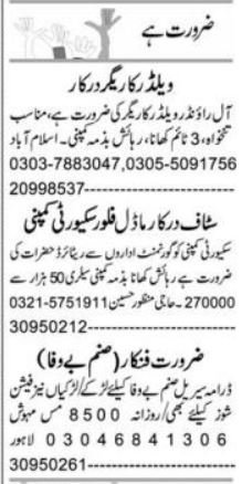 Personal Firm is on the lookout for candidates for following posts as per job commercial printed in each day Specific Newspaper of January 16, 2026 for location Faisalabad, islamabad Punjab Pakistan: