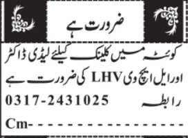Non-public Clinic invitations purposes for job positions marketed in day by day Jang dated 7 March 2026 for following vacancies in Quetta, quetta Balochistan Pakistan.