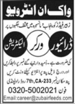 Vacant posts together with employee, electrician and driver are introduced in Zubair Feeds Non-public Restricted seventh Highway Rawalpindi, rawalpindi Punjab Pakistan as per 18 February 2026 commercial in every day Jang Newspaper. Candidates with Major, Matric and Center and many others. instructional background might be most popular.