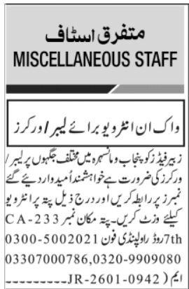 Zubair Feeds Personal Restricted jobs commercial dated about 14 February 2026 in each day Jang Newspaper invitations utility for the vacant submit of labor and employee in seventh Highway Rawalpindi, rawalpindi Punjab Pakistan. Most popular Schooling is Matric and Center and many others.